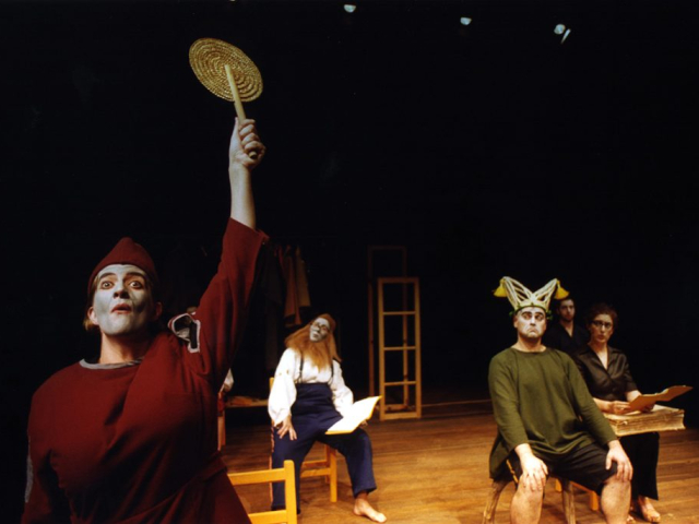 E também não adianta esconder que qualquer exercício de encenação implica escolhas deste tipo. No caso vertente, revela-se significativo o investimento na segunda e na terceira dimensões. Na leitura d’ A Escola da Noite existe lugar para o cómico, evidentemente. Pero Marques não deixa de ser o parvo do teatro medieval e a teatralidade da sottie (género que tem o parvo como figura central) não dispensa o riso. Mas, neste caso, parecem ir bem mais longe as apostas de exploração teatral. A presença em cena de Inês Pereira, por exemplo e a pose de leitura adoptada por todas as personagens, fazem do Livro um tópico estruturante, enquanto instrumento regulador de condutas colectivas. O Juiz é a única personagem que não precisa de ler. As sentenças— devidamente destacadas em termos de dicção e movimento de cena, representam, assim, não apenas um desvio das Ordenações mas a sua própria contravenção. E também não é por acaso que a última sentença (súmula de todas as outras) é proferida literalmente em cima do próprio livro, significando a sua derrota absoluta. Calcar a Lei, evidenciar a sua insuficiência moral, eis pois a orientação satírica que o encenador parece ter privilegiado, incorporando o fundo cómico mas colocando-o ao serviço de uma mensagem moral de larga abrangência, no tempo de Gil Vicente e até no nosso próprio tempo.
